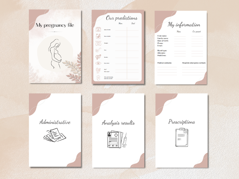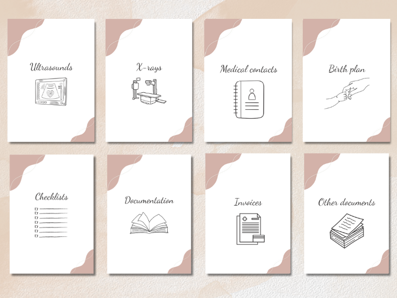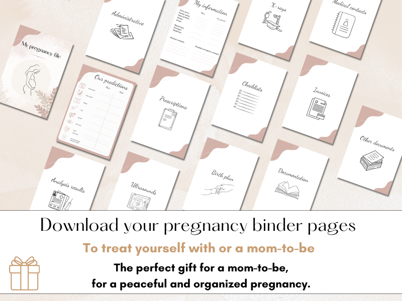 Printable dividers to organize your pregnancy binder so you can track every stage of your pregnancy, keep your medical documents in order, and calmly prepare for the arrival of your baby. Ideal as a gift for yourself or a future mom.